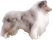 Blue-merle: Vorwiegend klares, silbriges Blau, mit schwarzen Flecken oder schwarzmarmorierter Zeichnung, satte lohfarbene Abzeichen sind erwünscht, ihr Fehlen