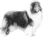 Weiße Abzeichen: Alle vorgenannten Farben können die für den Collie typischen weißen Abzeichen mehr oder weniger aufweisen. Folgende Zeichnung ist vorteilhaft: