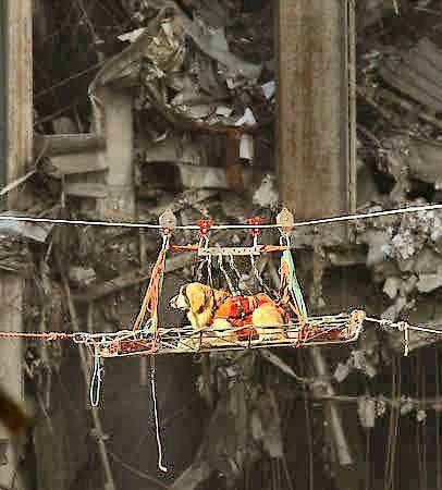 22 Minuten später stürzt der Nordturm des World Trade Centers ein. Nahezu zeitgleich rücken die Hundestaffeln aus - insgesamt